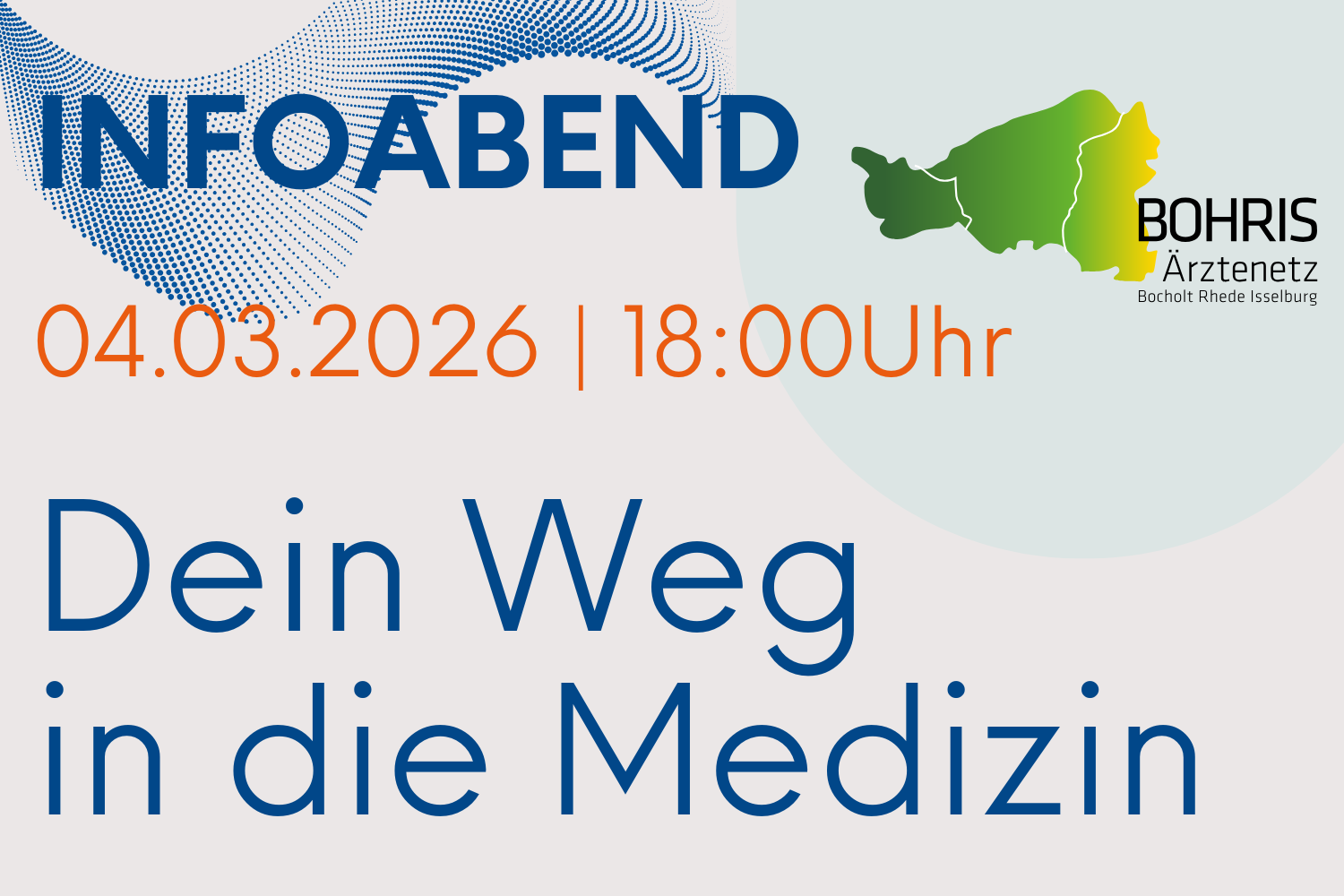 Wie realistisch ist der Weg ins Medizinstudium? Welche Voraussetzungen sind wichtig, wie läuft das Studium tatsächlich ab – und wie sieht der spätere Berufsalltag als Ärztin oder Arzt wirklich aus? Antworten auf diese Fragen bietet ein Informations- und Gesprächsabend, zu dem das Ärztenetz BOHRIS am Mittwoch, 04. März 2026, um 18:00 Uhr ins Europahaus Bocholt (Adenauerallee 59, Raum Belgien) einlädt.